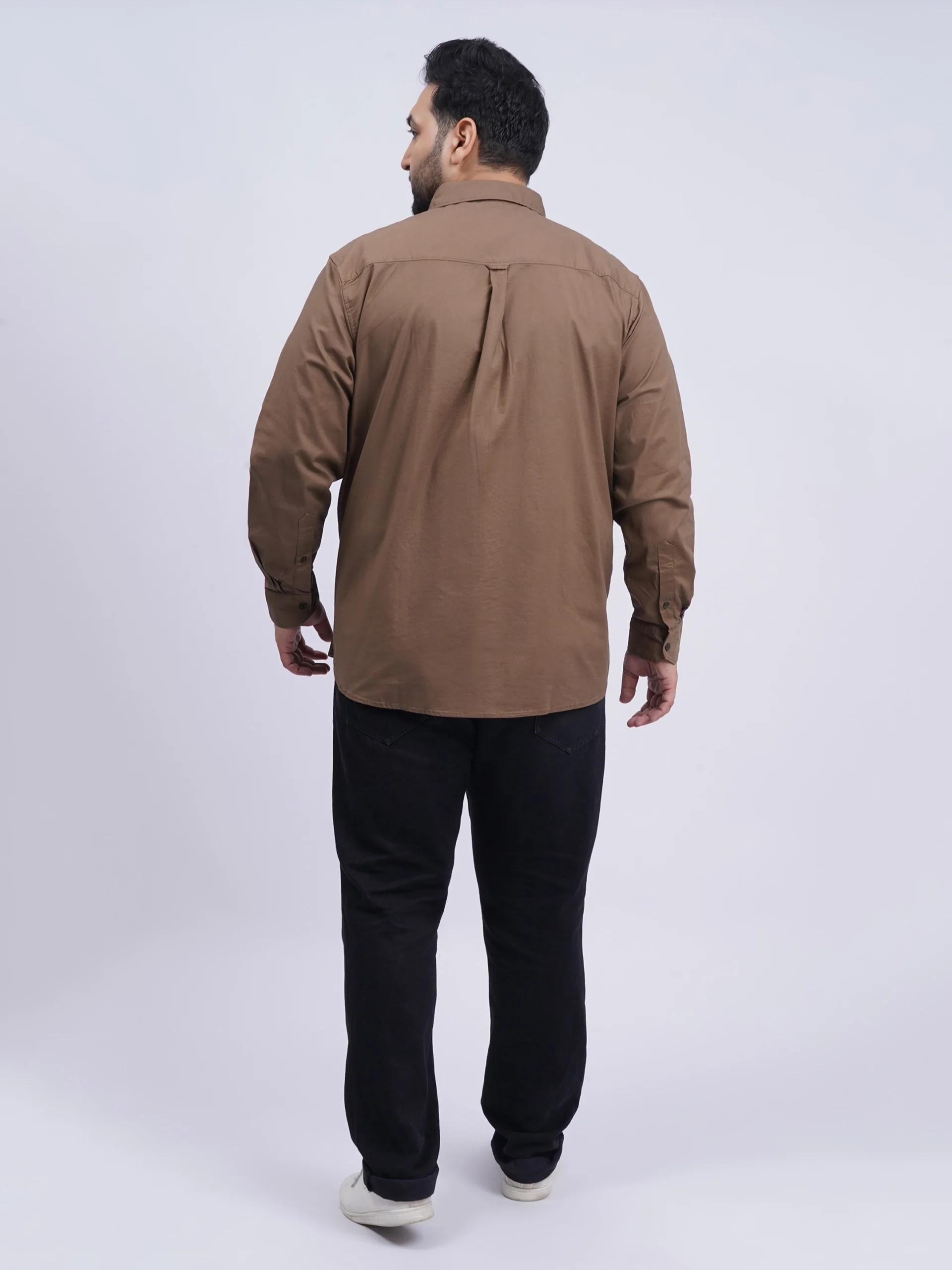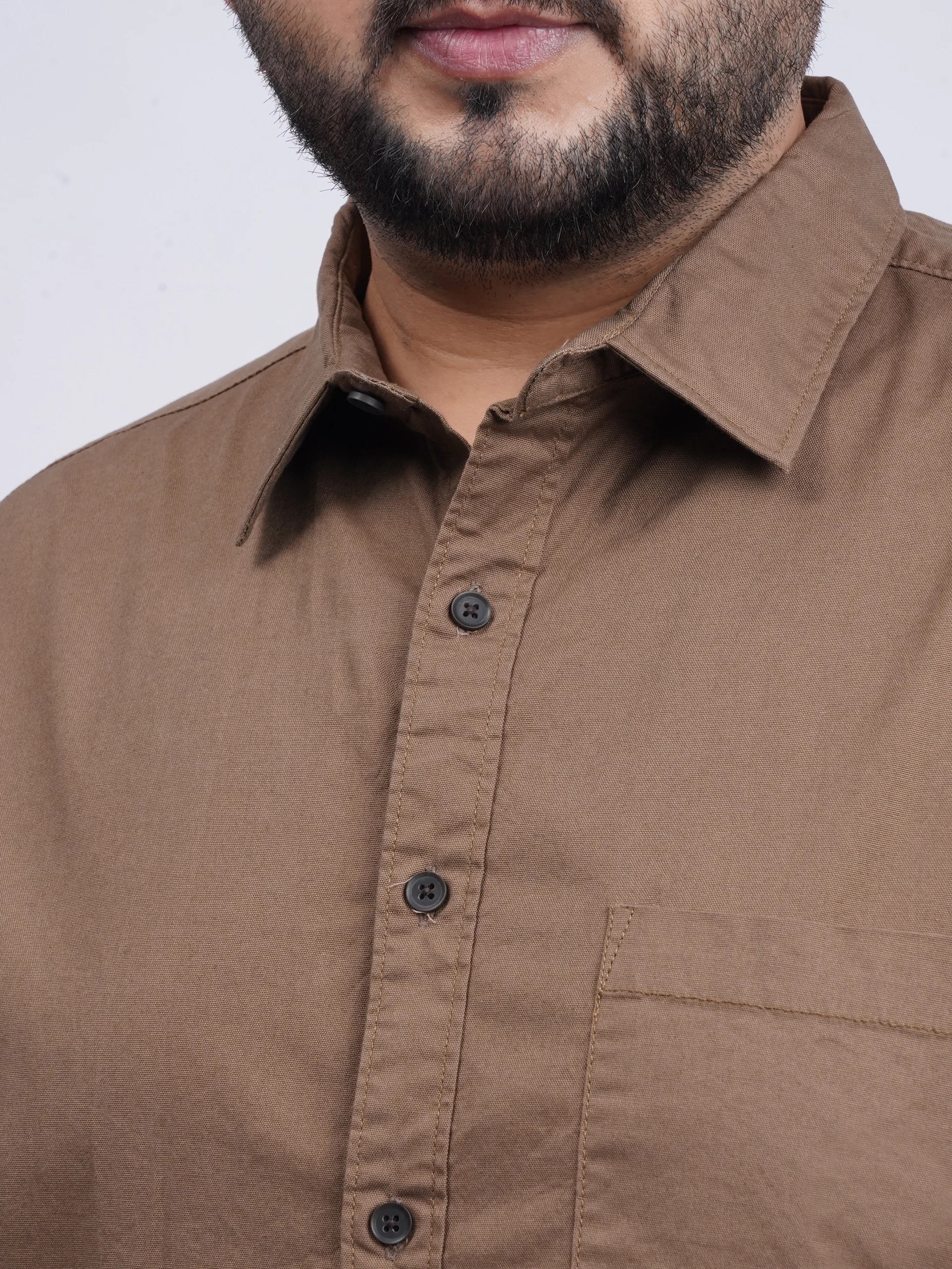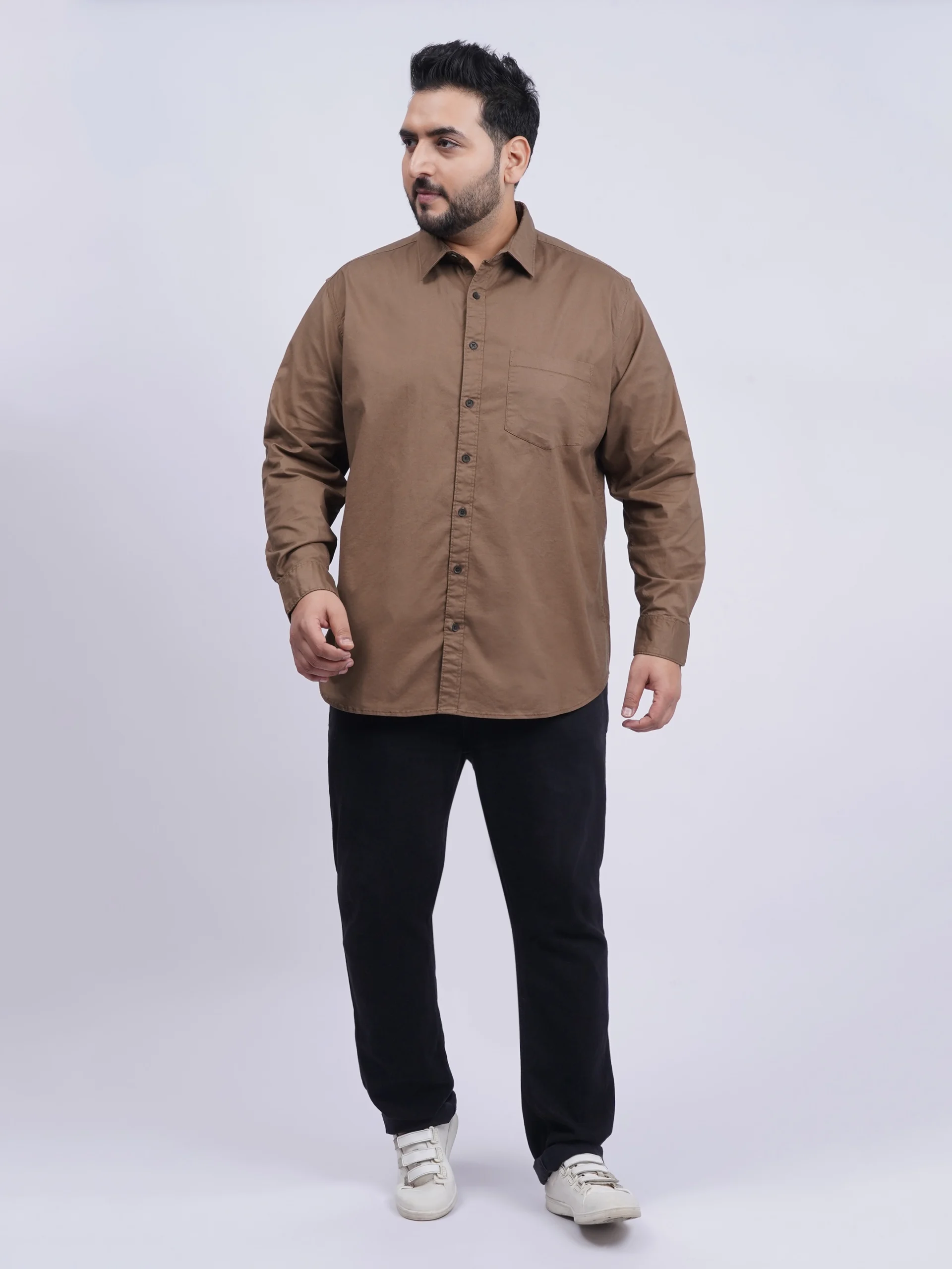 Upgrade your everyday wardrobe with this Brown Premium Solid Plus-Size Shirt, crafted specially for men who value both style and comfort.